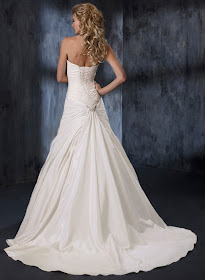 —perfect for my beach-themed wedding. But when I fitted one chiffon gown in Ivory and White, I didn't like how the gown made me looked like a frumpy little bride. :( It turned out that gowns with a fitted bodice and a slim A-line or semi-serpentine silhouette look better on my body. Ruchings and pleats on the bodice are a plus because they would hide my flabby tummy. Hehe.